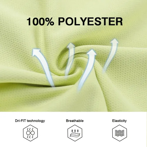 100% polyester and keeps you feeling dry.